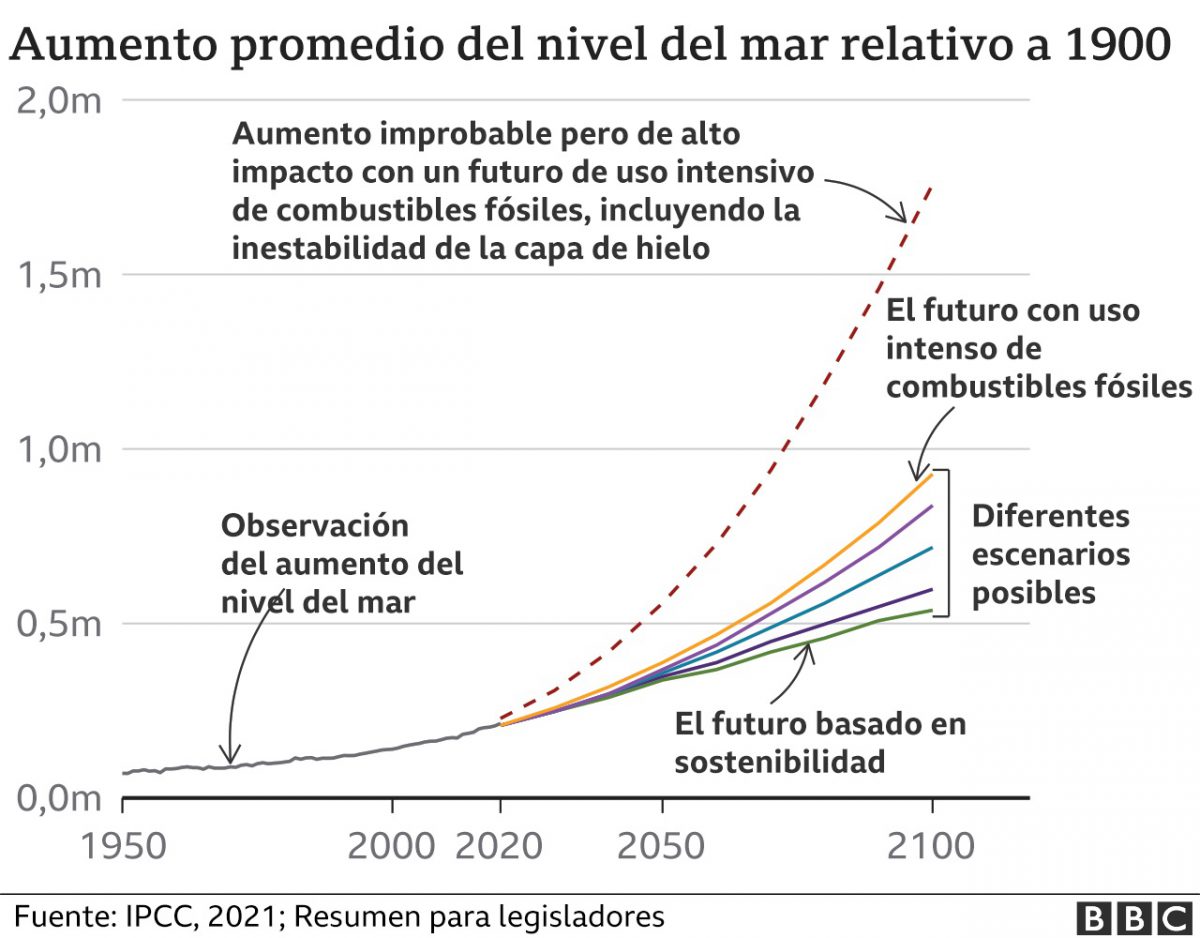 Eso un escenario bastante negativo, pero incluso si controlamos las emisiones y mantenemos las temperaturas alrededor de 1,5°C para el 2100, las aguas continuarán subiendo en el futuro.