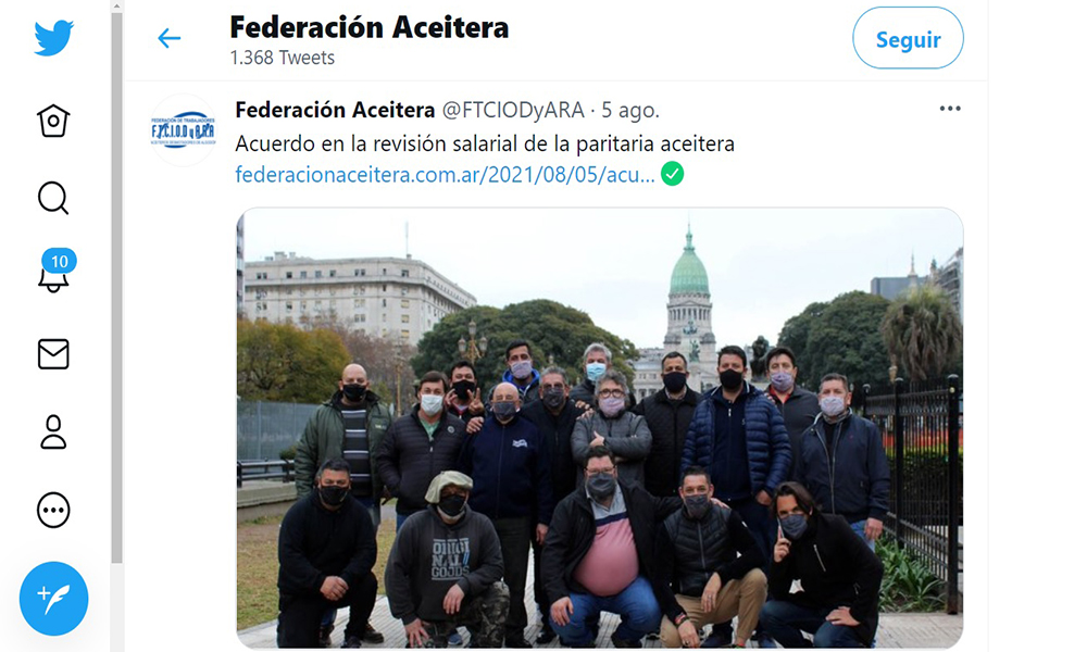 El gremio aceitero sorprendió y consiguió un básico de más de $100.000 mensuales. Esta actualización superó el promedio de 45% de aumento salarial que están negociando la mayoría de los gremios importantes en el país. Por su parte los trabajadores encuadrados en la UATRE recibirán un aumento del 48,6%, con revisión en el 2022.