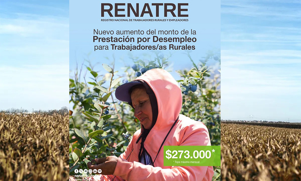 El directorio del Registro Nacional de Trabajadores Rurales y Empleadores (Renatre) informó que se dispuso una nueva actualización en los montos máximos y mínimos de la prestación por desempleo: el primero alcanzará los $273.000 y el piso llegará a los $136.500, desde el mes de julio.