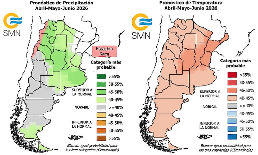 En el caso de la Argentina, los últimos informes del Servicio Meteorológico Nacional (SMN) ya reflejan señales consistentes con este escenario. Para el trimestre otoño-invierno 2026 se proyectan precipitaciones superiores a lo normal en amplias zonas del país, especialmente en la región central, incluyendo Córdoba, oeste de Santa Fe, este de San Luis y sectores de Buenos Aires.