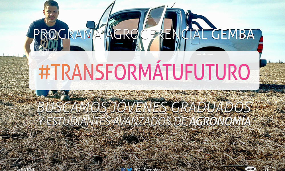 GEMBA, el programa de AGD que brinda oportunidades laborales a jóvenes ingenieros agrónomos, abre una nueva búsqueda destinada a profesionales que quieran desarrollar una carrera en toda la red de acopios con la que cuenta la empresa, teniendo la posibilidad de estar a la vanguardia en comercialización, agroinsumos, agricultura de precisión, calidad y buenas prácticas agrícolas, así como aprender día a día de la mano de expertos en cada tema.