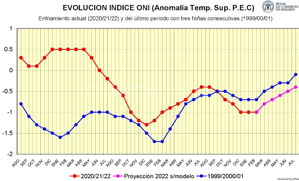 Las primeras dos de las tres Niñas que se produjeron entre 1999 y 2001 fueron muy intensas con valores ONI que incluso perforaron la barrera del -1,5. La tercera ya no, y las proyecciones muestran que esta posible tercera Niña sería más grave que la de hace veinte años atrás.