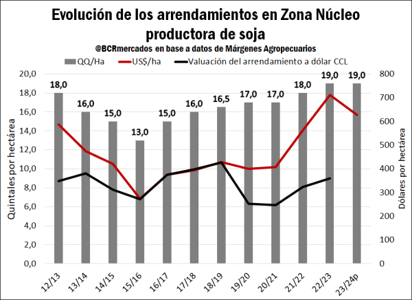 De cara a la campaña 2023/24, se espera que el alquiler reduzca su peso, pero el guarismo final dependerá de los rendimientos que efectivamente se logren obtener.