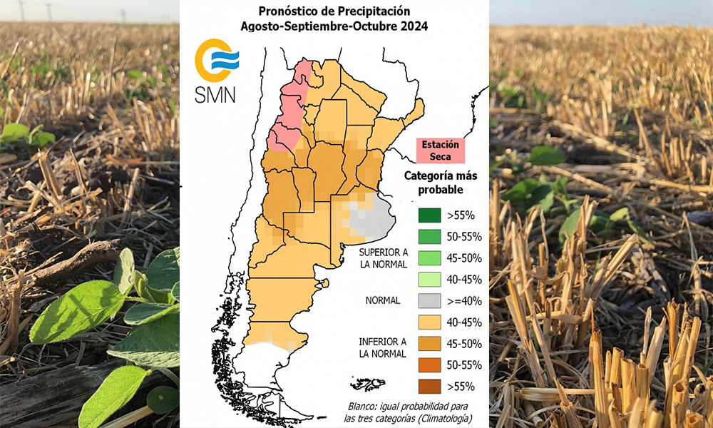 El SMN comunicó que se espera un trimestre seco en gran parte del territorio. Al mirar por región, en el norte del Litoral y sur de Patagonia se anticipa una cantidad de precipitaciones inferiores a lo normal.