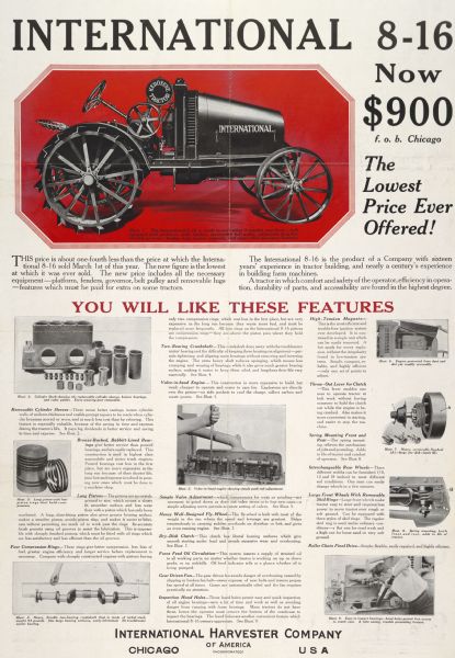 La guerra de precios con Henry Ford y su modelo Fordson (se llegó a vender a 395 dólares), llevó a la empresa IH a ir reduciendo cada vez más el precio de ventas del International 8-19. De esta forma el 8-16 pasó de 1150 dólares en 1921 a solo 670 dólares en 1922. Incluso, hay quienes indican que hasta tenían que entregar un arado de 2 rejas para poder venderlos.
