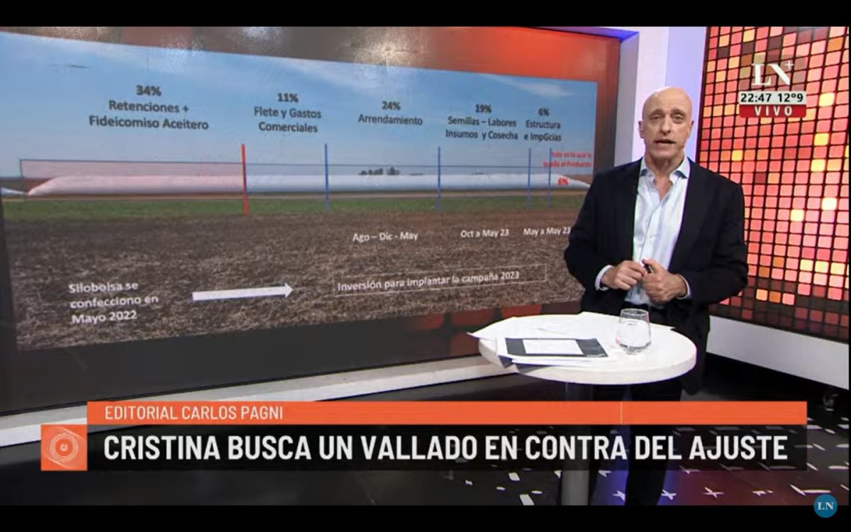 Tanto en su editorial de su programa televisivo de los días lunes, como en su columna escrita de los martes en el diario La Nación, el periodista Carlos Pagni explicó cuánto le queda a un productor del total de un silobolsa.