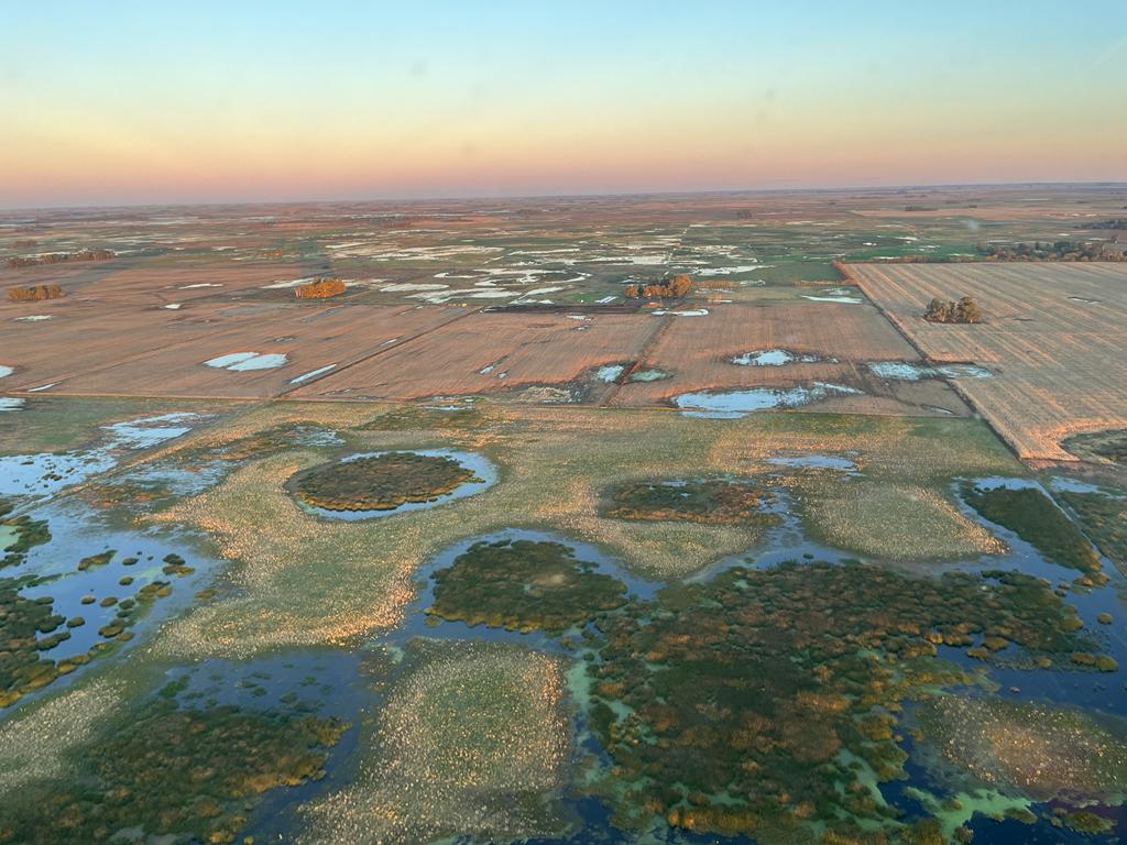 En Twitter, Andrea Passerini (@AnPasserini), productora tambera de la zona, se refirió al panorama que enfrenta la región acompañando fotos. “Las imágenes aéreas tomadas en las últimas horas muestran la real magnitud del volumen de agua q está ingresando al partido x la zona sur desde varios sectores, esto sumado a los 700 mm caídos en los primeros 4 meses del año (marca q está muy cerca de alcanzar la media anual)”, escribió en su cuenta personal. Luego compartió un video donde muestra que se “intenta” cosechar: “A paso de hombre y enterrándonos…”. Fotos crédito a portaleltoro.com