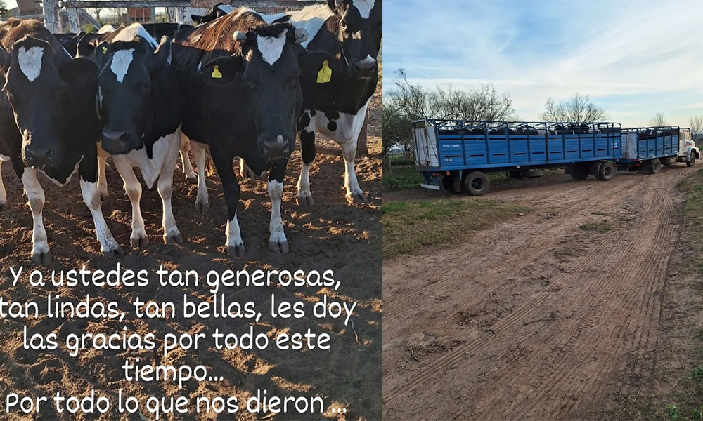 “Hoy estamos de duelo, fue desconsolador el llanto cuando se alejaban los camiones. Solo me queda agradecerles a las vaquitas, mis amores, todo lo que nos dieron”, definió sobre el duro momento que atraviesa.
