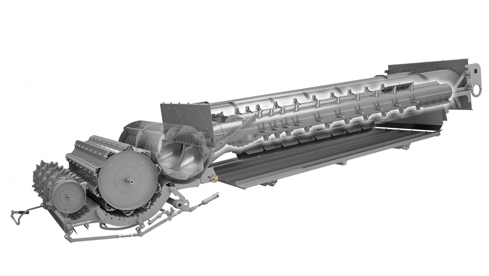 APS SYNFLOW HYBRID mantiene el exitoso concepto que combina una unidad de trilla tangencial con un tambor preacelerador y una separación secundaria axial. El diámetro del tambor de trilla con 10 barras batidoras se incrementa a 755 mm. A ello le sigue un nuevo tambor lanza pajas segmentado más grande con un diámetro de 600 mm. El ancho de la unidad es de 1.700 mm en los modelos de la serie 8000 y 1.420 mm en los modelos de la serie 7000. El gran diámetro del tambor de trilla crea un ángulo envolvente menor, de 132°. Todas estas características, junto con la sincronización de las velocidades del tambor, permiten un flujo de cultivo recto y suave, a la vez que se ahorra combustible.