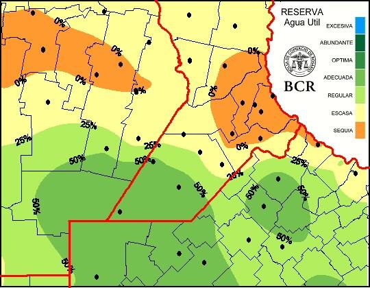 Las áreas con escasez y sequía son un 60% de la región. Esta zona barca a parte del norte bonaerense, centro sur santafecino y el centro este cordobés. En esta zona se estima pérdidas de rindes del orden del 30%, “pérdidas irrecuperables”, advierten los ingenieros del área. Y el cultivo puede perder aún mucho más si no llueve. En Marcos Juárez, el 30% de los cuadros están regulares a malos. Desde Colón advierten que la zona está muy seca, si no llueve en estos días habrá pérdidas muy importantes. El 40% de los cuadros están en estado regular a causa de la sequía y arañuela. En Cañada Rosquín debería llover todas las semanas para mantener las expectativas actuales de rinde, sino se van a desplomar, dicen.
