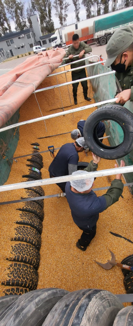 Ante la inconsistencia de la documentación, los funcionarios de la Aduana realizaron un control sobre la carga y detectaron 117 neumáticos cubiertos por granos. Se produce además en un momento en el cual hay faltantes y sobreprecios.
