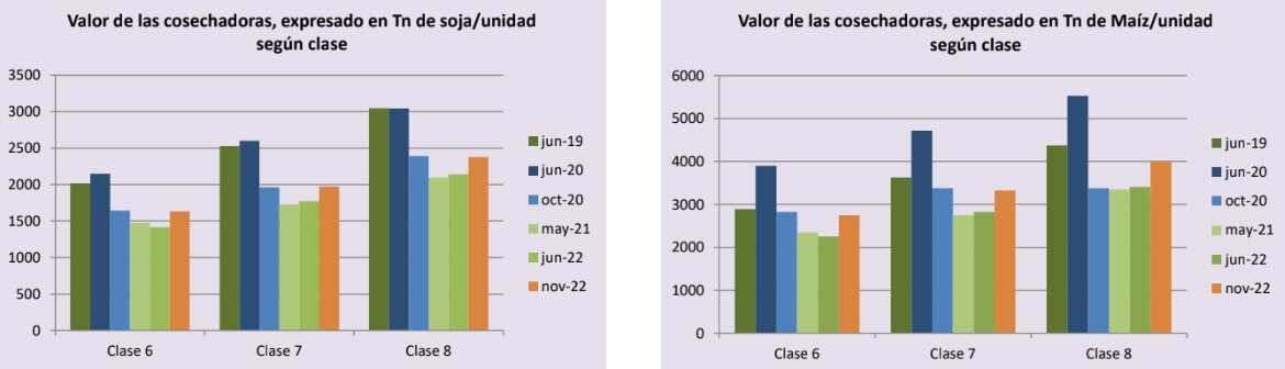 Ahora, si para comprar esa misma cosechadora Clase 8 se utilizó maíz, entonces se necesitaban 3.400 toneladas en junio pasado y 4.000 toneladas en noviembre.