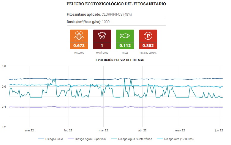 De forma simultánea, PRORIPEST anticipa condiciones que aumentan el riesgo sobre el agua y el suelo, como pueden ser lluvias intensas, suelos con mucha pendiente o de textura arenosa, o tecnologías inadecuadas para aplicar los productos. Así, es posible elegir el momento para aplicar, pensar en cambiar la tecnología de aplicación o, incluso, cambiar el producto por otro que implique menos riesgo. Esta herramienta permite plantear diversos escenarios sin tener que experimentar con pesticidas.