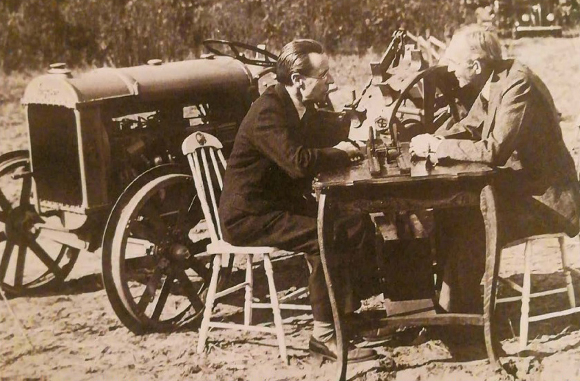 En la foto superior se puede ver a Henry Ford arriba del tractor y a Ferguson mostrándole cómo se accionan las palancas del sistema 3 Puntos.
