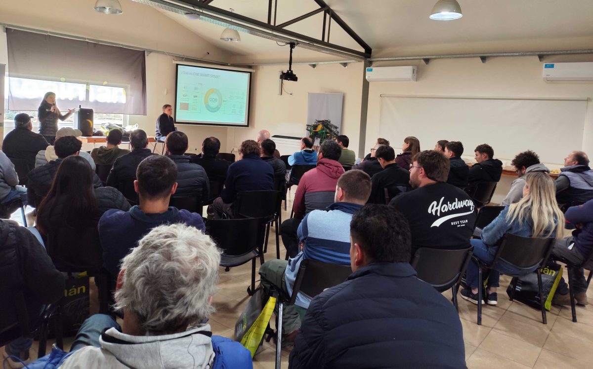 Ante unos cincuenta productores de punta y contratistas de la zona, el concesionario CD Junín mostró la nueva pulverizadora Caimán.