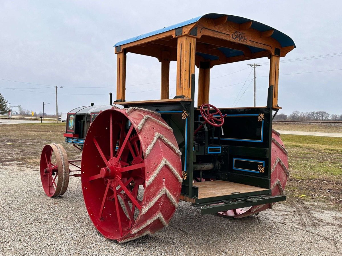 Tractor Rumely 15-30 (15 Hp a la barra de tiro y 30 Hp a la polea). Este modelo es de origen americano y se fabricó entre 1913 y 1915. Este tractor fue a remate y se pagó por él 90 mil dólares.