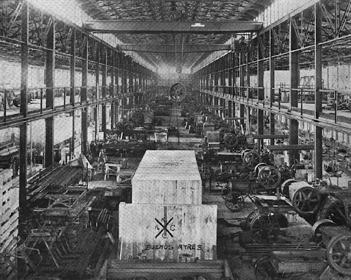 Interior de la fabrica Rumely – Allis Chalmers en La Porte. Ver en la foto la inscripcion «Buenos Aires». La cual puede ser una tapa de cajon con destino a la Argentina