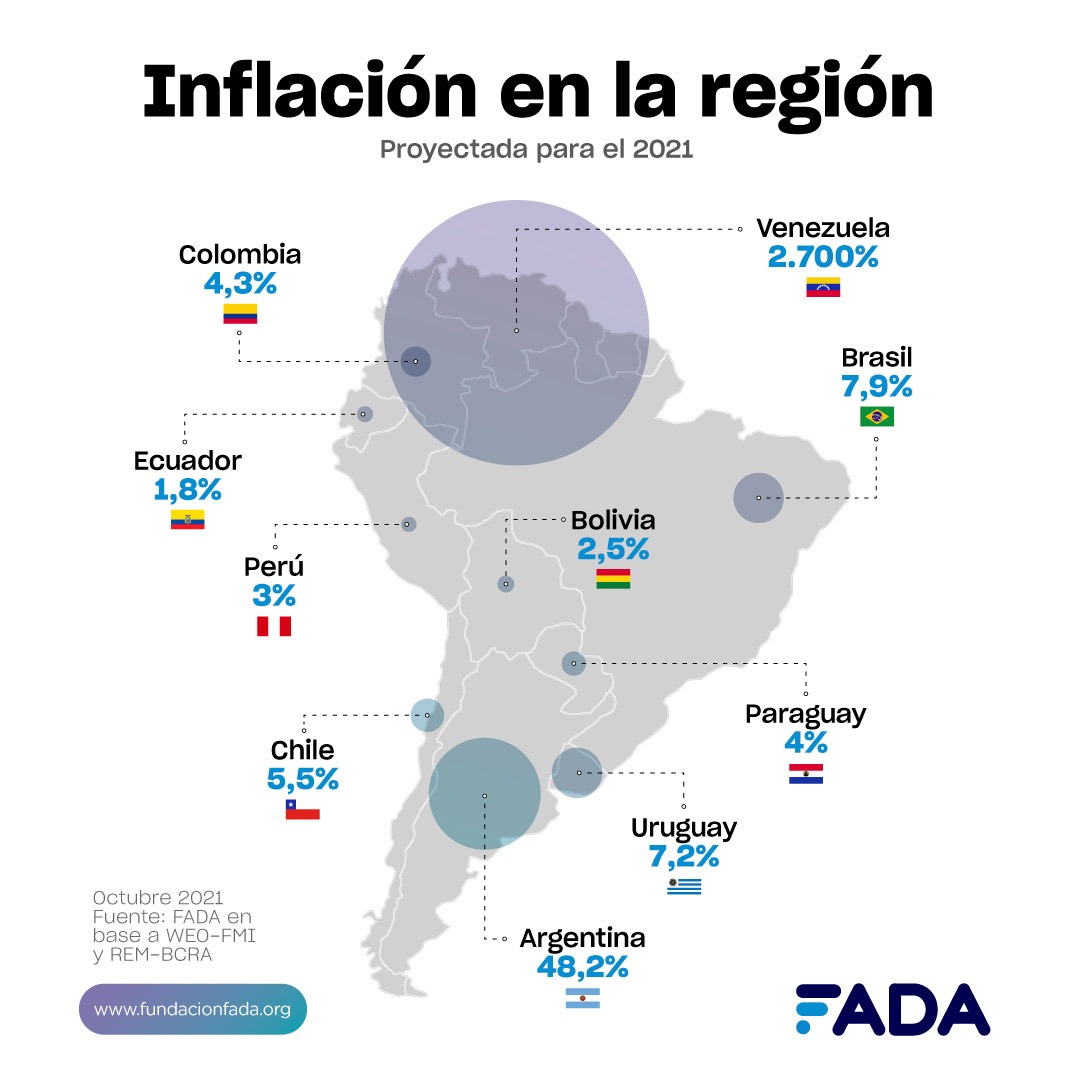 El peso de los impuestos y la inflación, que anualizada se prevé en 48,2%, está afectando el consumo de los productos básicos. Otro dato no menor, Argentina tiene la segunda inflación más alta de toda Latinoamérica detrás de Venezuela que posee un 2700% anual. Pero la tercera la posee Brasil con solo 8% anual, esto nos da una idea que quienes estamos haciendo las cosas mal somos nosotros.