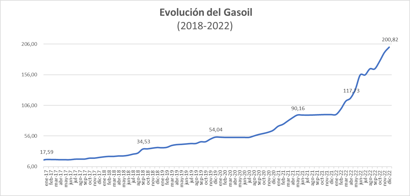 Preocupa al sector particularmente en el caso del gasoil, que es el principal insumo dentro de la estructura de costos (representa entre 33% y 36%).