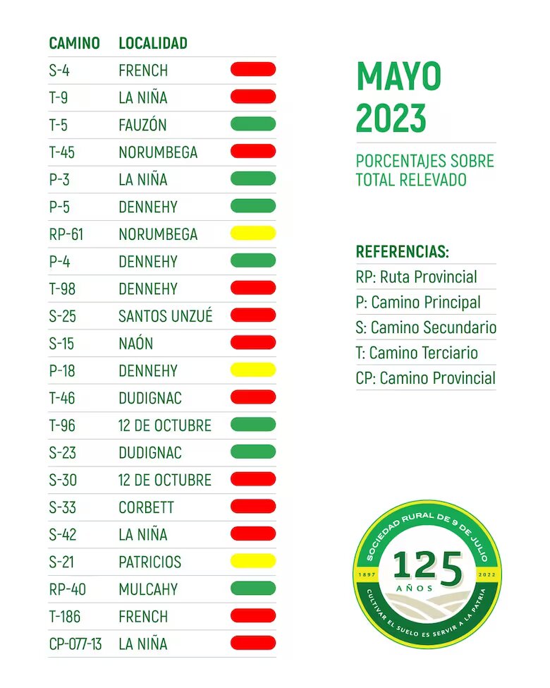 Hace tres meses la Sociedad Rural de la localidad bonaerense de 9 de Julio creó un ingenioso mecanismo para que los mismos productores hagan un relevamiento de las tareas de mantenimiento de la red vial rural. Según aseguraron desde la entidad, el denominado “Semáforo de caminos rurales”, como llamaron a este sistema, ya comenzó a dar los resultados que se buscaban.