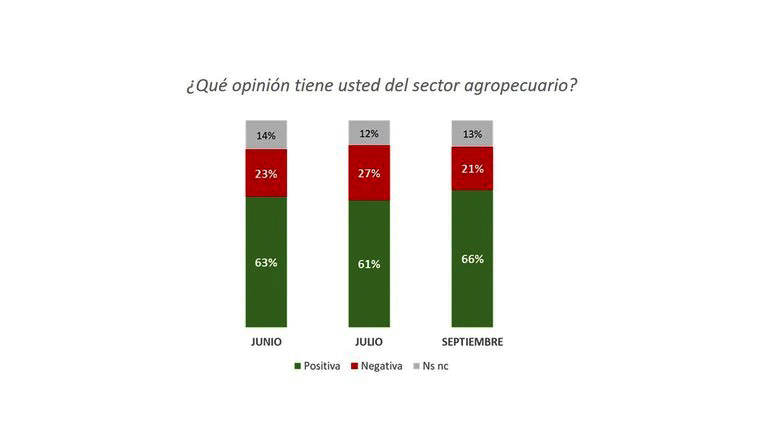 “En las tres mediciones de junio, julio y agosto, la aprobación general del campo no baja del 60%. Significa que no hay una animadversión espontánea en la opinión pública contra el agro como muchos suponen que hay: la imagen negativa del sector agropecuario ronda el 25%”, aseguró el director de la consultora Tomás Lanusse, en declaraciones a este medio. Inclusive, la mejora se da en un contexto donde el Gobierno buscó un acercamiento post electoral con el sector, sobre todo, con el nombramiento de Julián Domínguez como ministro de Agricultura, Ganadería y Pesca para un relanzamiento de la relación y para destrabar ciertos problemas, como la exportación de carne de vaca a China.