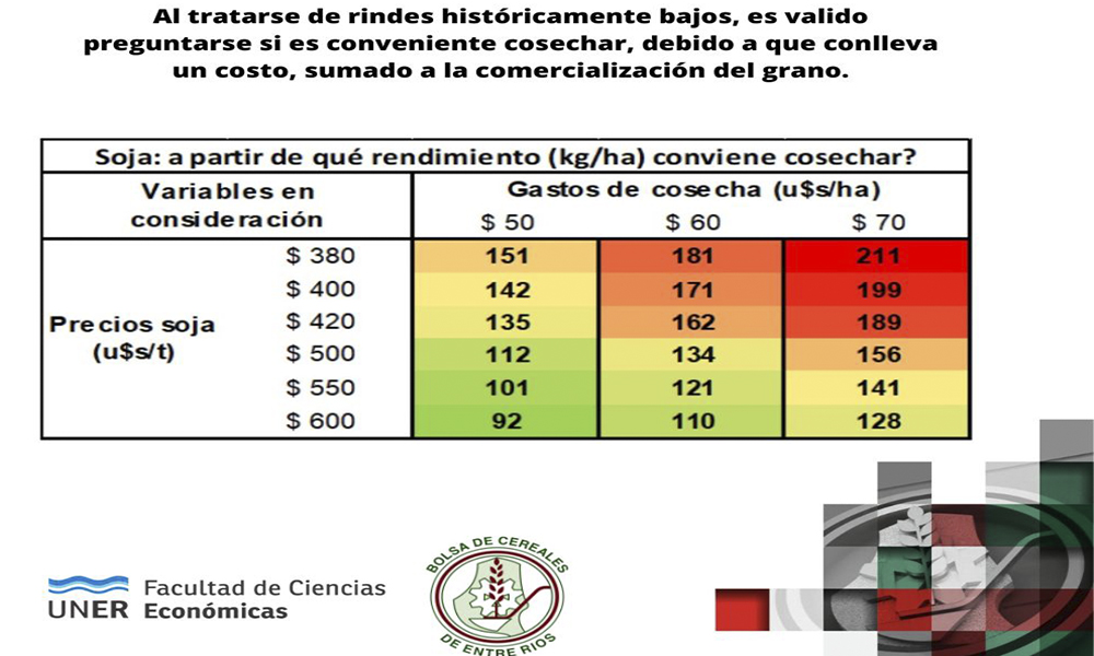Al tratarse de valores históricamente bajos, cabe preguntarnos si es conveniente para ciertos productores que obtengan rendimientos inferiores a los promedios efectuar la cosecha, debido a que conlleva un costo, sumado a la comercialización del grano.