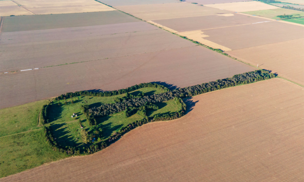 La idea de la estancia nació a bordo de un vuelo sobre la llanura pampeana, Graciela había visto un campo que parecía ser un balde y tomó de ello su inspiración.