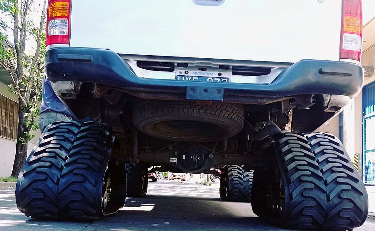 Un emprendedor argentino desarrolló un sistema de orugas para ser instalado todo tipo de pick ups. Las promocionan en la calle y las venden en dólares.