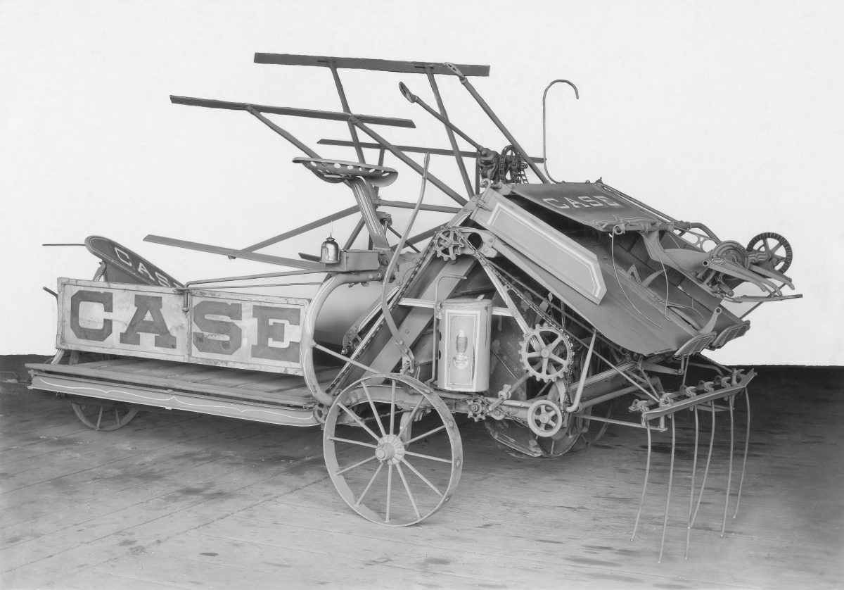 Antigua segadora de granos CASE, muy probable que sea del año 1935.