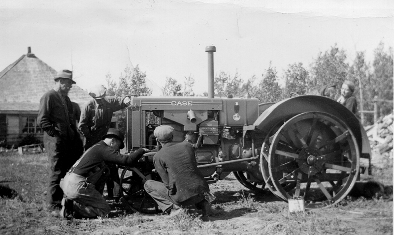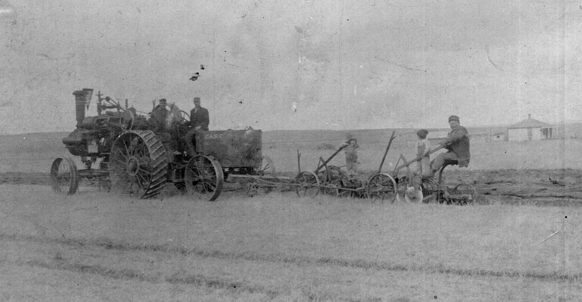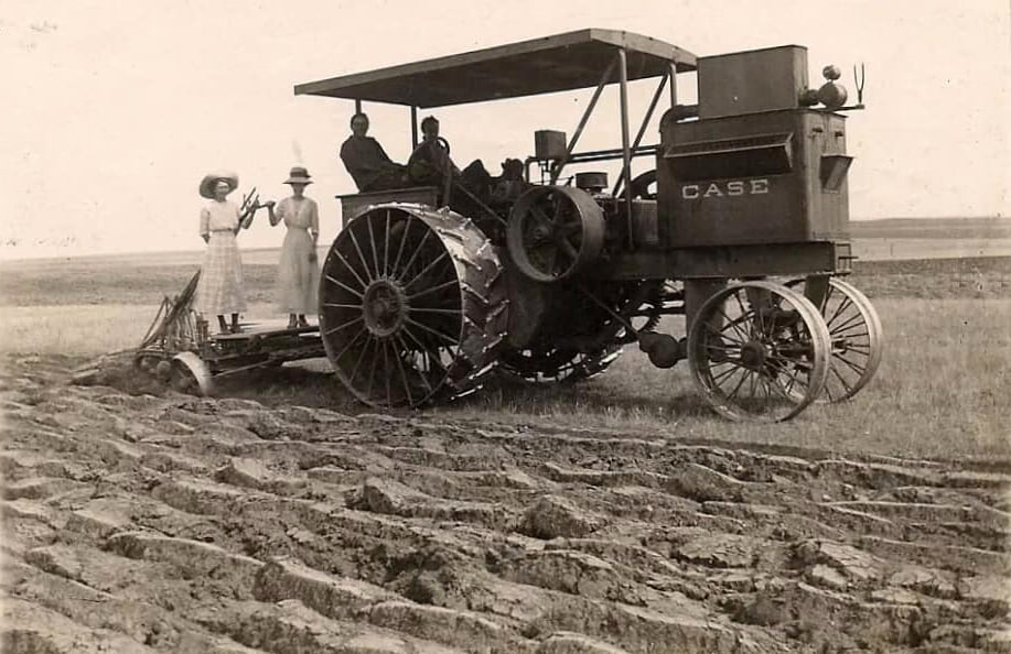 Tractor CASE 30-60 en Dakota del Norte. Las esposas estaban visitando a los maridos. Cortesía de Gary Yaeger.