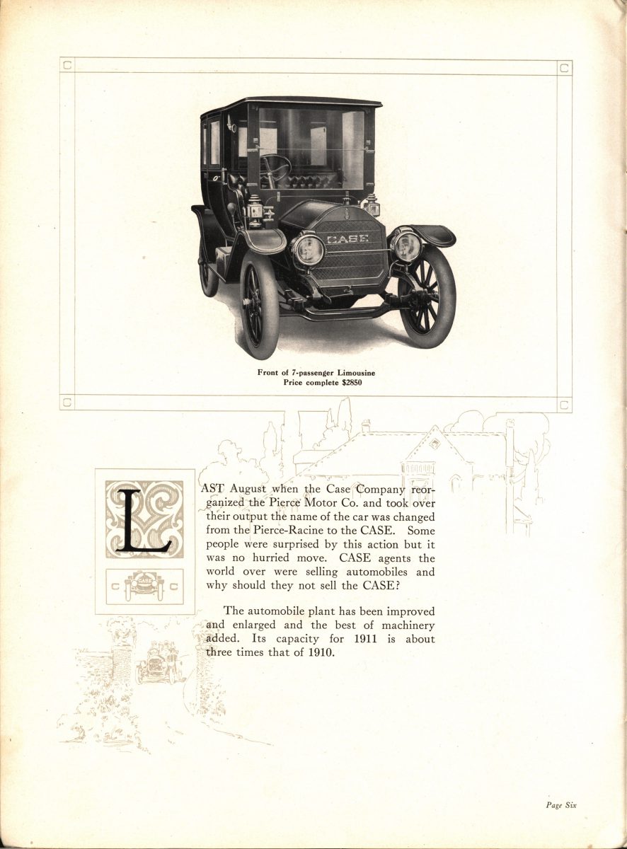 CASE AUTOMOBILES J.I. CASE de 1911. El folleto indica que su precio era de 2850 dólares.
