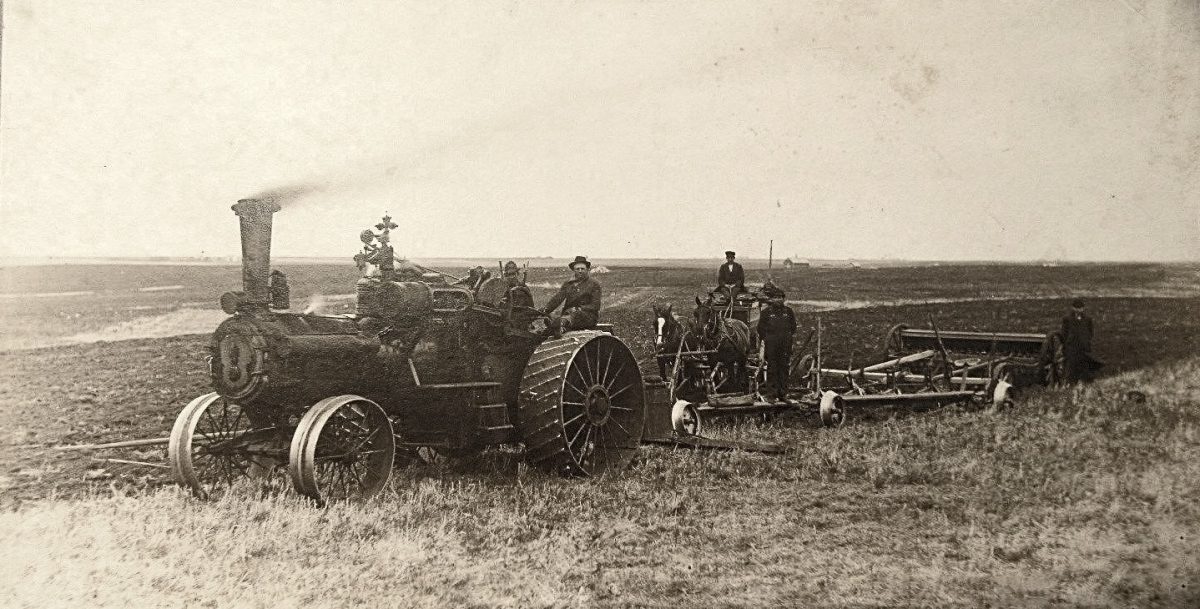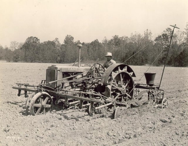 Motor a vapor Case 25 Hp, arando y sembrado a la vez.