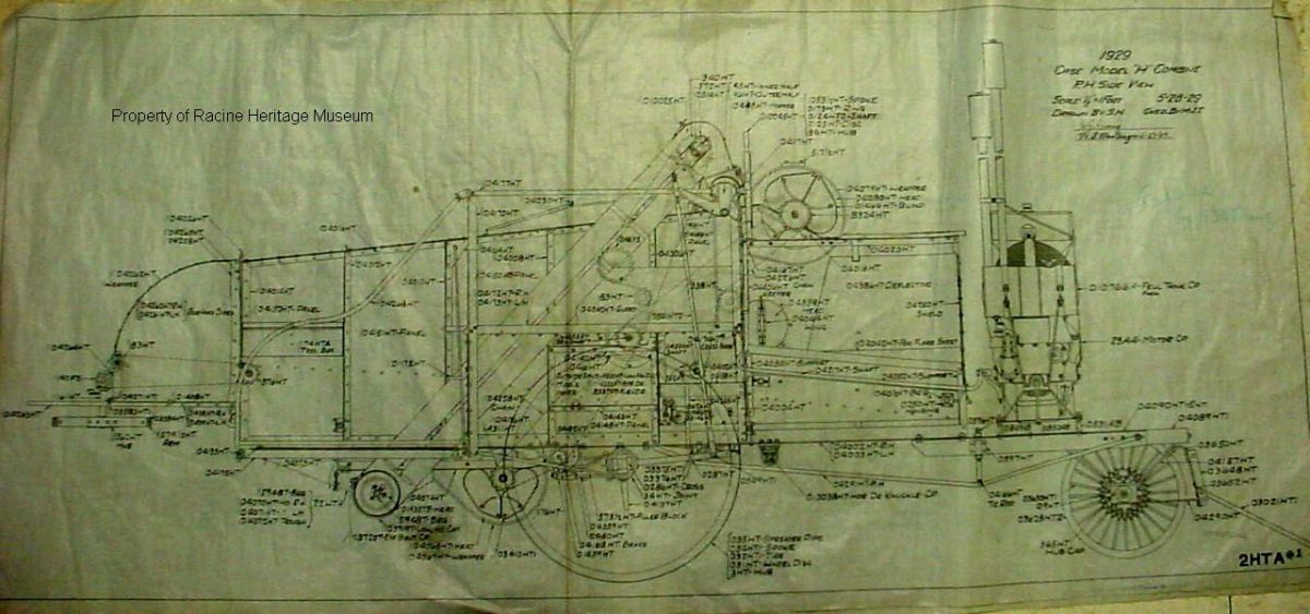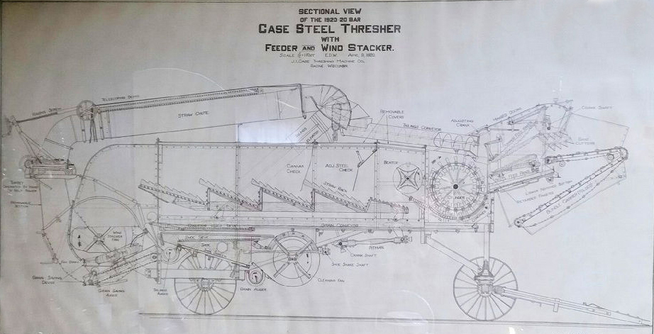 Trilladora CASE Combinada Modelo H de 1928. Plano Firmado por Wallace Mac Gregor y D Pryce Davies.