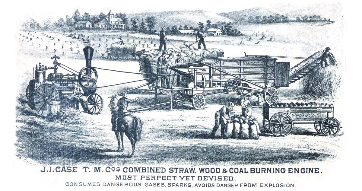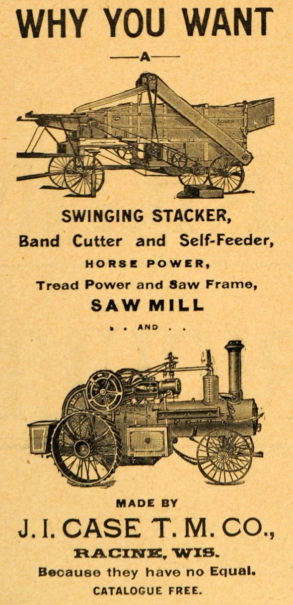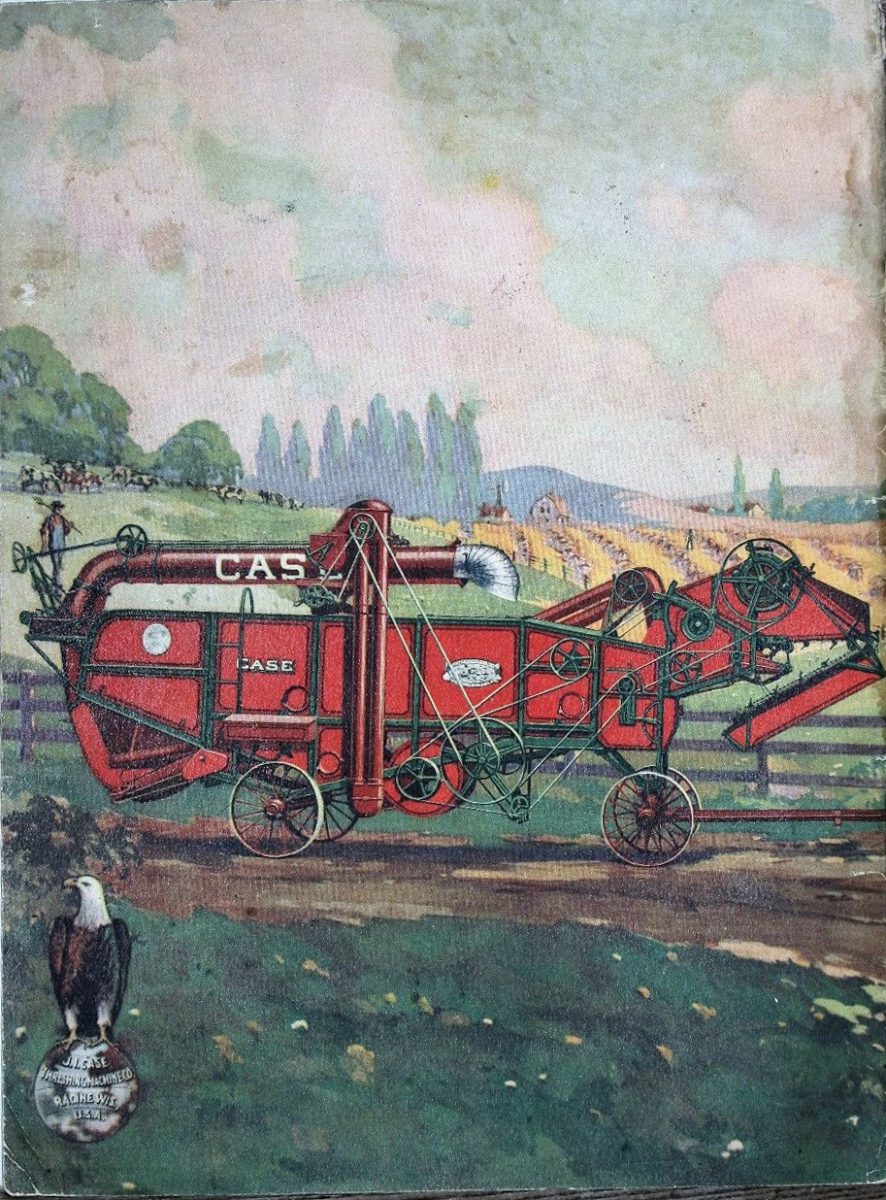 Tapa de un folleto de 1894, se ve la enorme importancia de las trilladoras estáticas para la JI Case (Dice: Cada generación encuentra un CASE mejor)