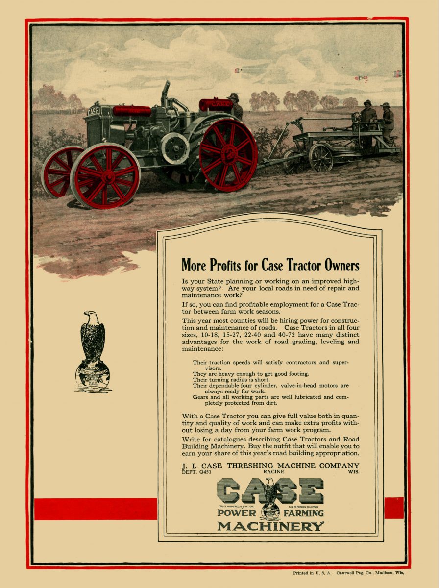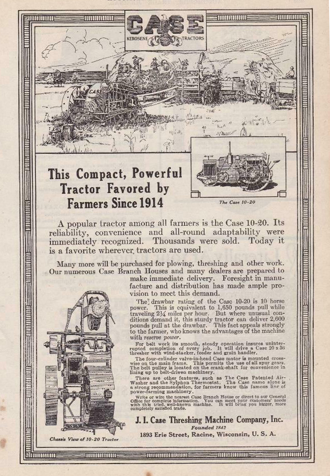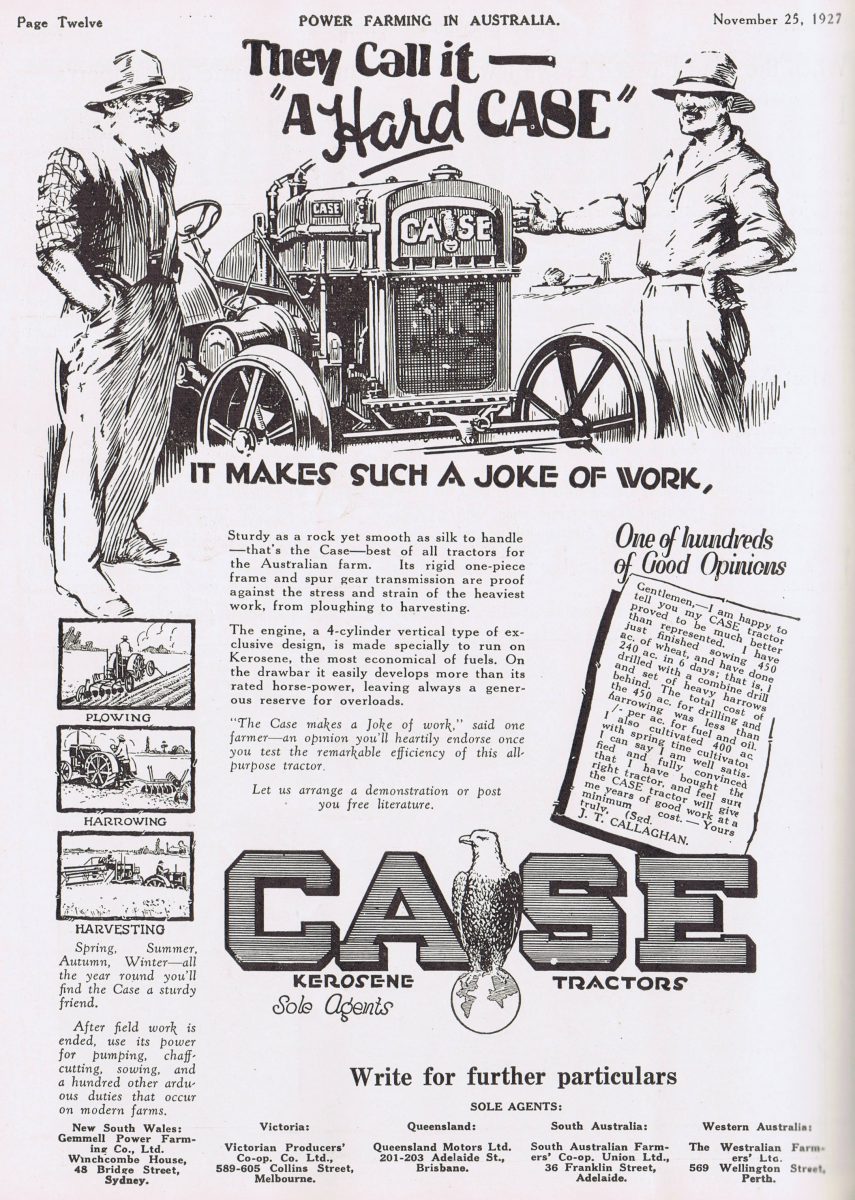 Foto de una pieza publicitaria de CASE Australia. Como se ve arriba, es del año 1927.