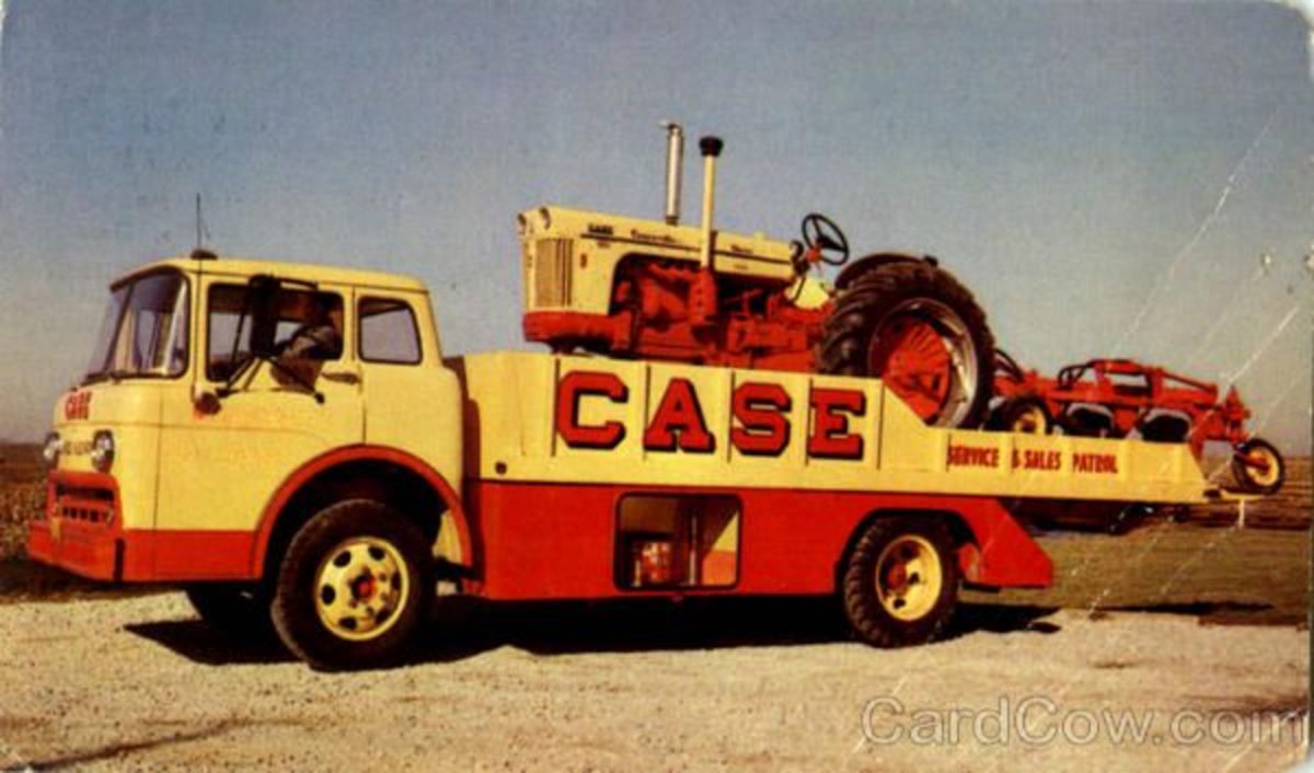 Patrulla de Servicio y Ventas, dice el camión de la empresa CASE.