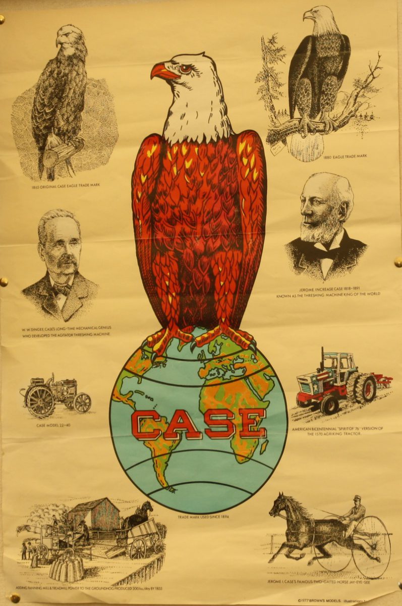 Lamina de 1977, en esta se destacan distintos momentos de la empresa, por ejemplo los dos modelos antiguos del águila como insignia. E incluso está la foto del Ing. William Dingee junto a la de Jerome Case
