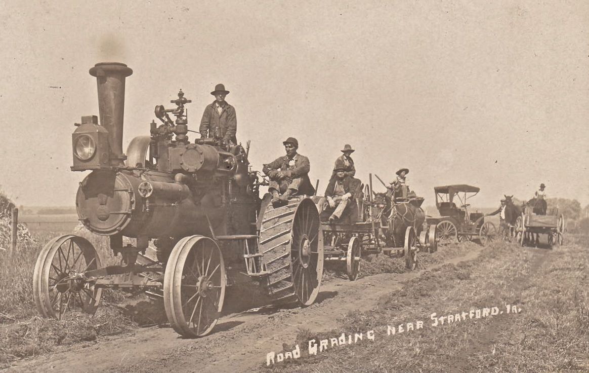 Motor a vapor Case nivelando los caminos cerca de Stratford, IOWA.