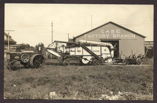 «Sucursal de la fábrica CASE», dice el frente del galpón, es de imaginar que este era lo que hoy se denomina un Concesionario oficial CASE.