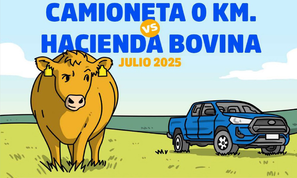 Con un valor de camioneta en torno a $ 53 millones, los datos expuestos indican que a julio de 2025 se necesitan 13.640 kg de ternero (un 32% menos que en julio de 2024) y 17.050 kg de novillo (una baja del 30% interanual), para acceder al mismo vehículo.