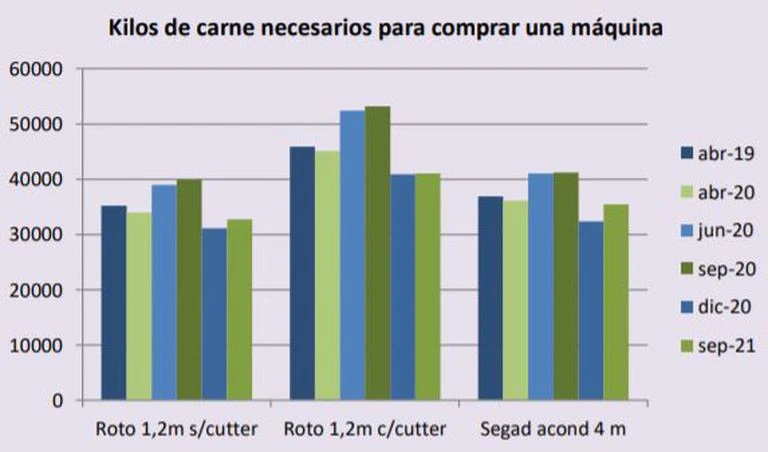 En septiembre de 2021 se necesitó 20% menos de kilos de carne que en igual fecha de 2020 para comprar una Rotoenfadadora con sistema procesador de fibra y 1,20 m de ancho de labor.