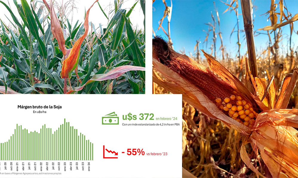 De acuerdo a un informe elaborado por la Sociedad Rural Argentina (SRA), en el lapso de tiempo comprendido entre la siembra gruesa de la campaña 2023/24 hasta la actualidad, se registró un fuerte deterioro en los resultados económicos de soja y maíz.