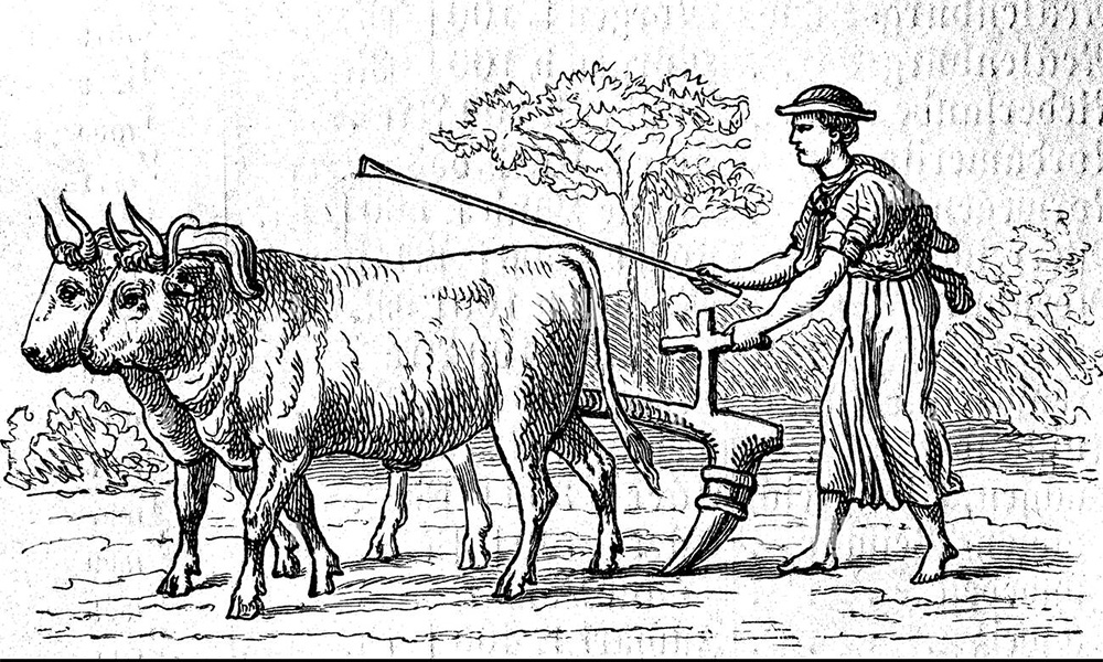 Lo anterior es una verdad, pero a medias. Porque esa escalera evolutiva pasa por alto por completo un gran peldaño en la historia de la agricultura, a saber, el uso de los bueyes.