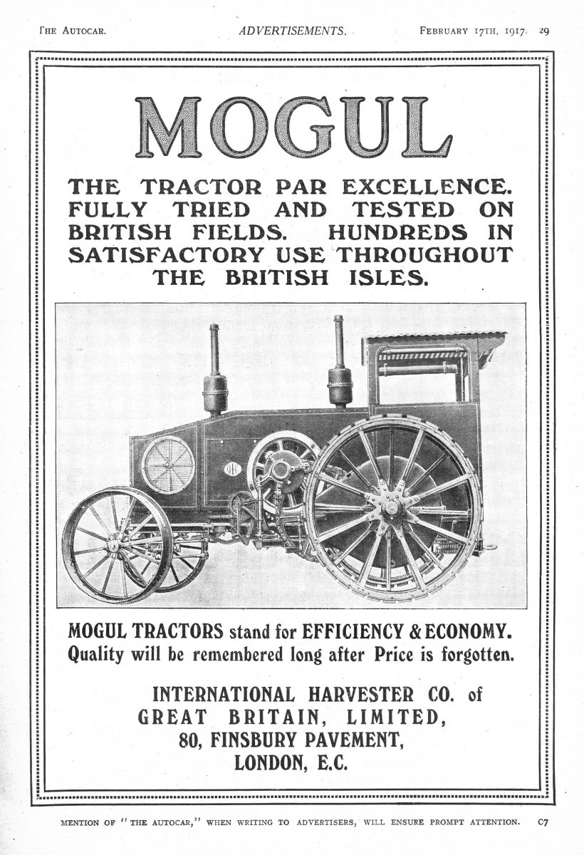 La IHC produjo una gama muy importante de tractores agrícolas, tanto con la marca Mogul como con la marca Titán. Estos tractores con motor a explosión, por ser de los primeros que aparecieron en el mercado, tuvieron un éxito relativo, pero marcaron una tendencia que se empezó a dar a partir de 1915, que era trabajar con tractores pequeños y baratos.