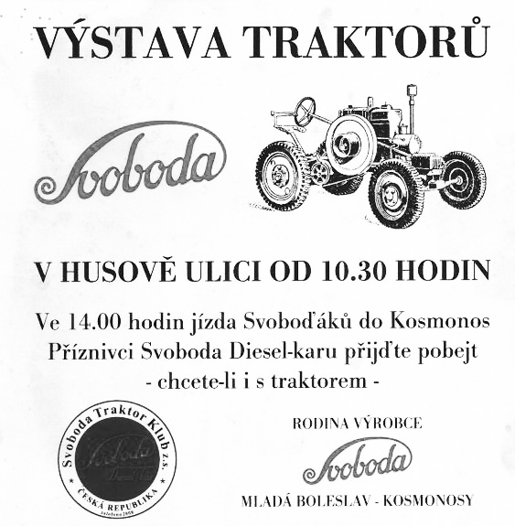 Svodoba fue el primer tractor checo y se fabricó entre 1939 y 1949. Tenía un motor de 1730 cc y erogaba 12 Cv, la caja era de 3 marchas y retroceso que accionaba sobre el eje trasero mediante cuatro correas trapezoidales. Sus medidas eran: 1,5 mts de alto, 2,8 de largo y 1,47 de ancho y desarrollaba una velocidad de 15 km/h.