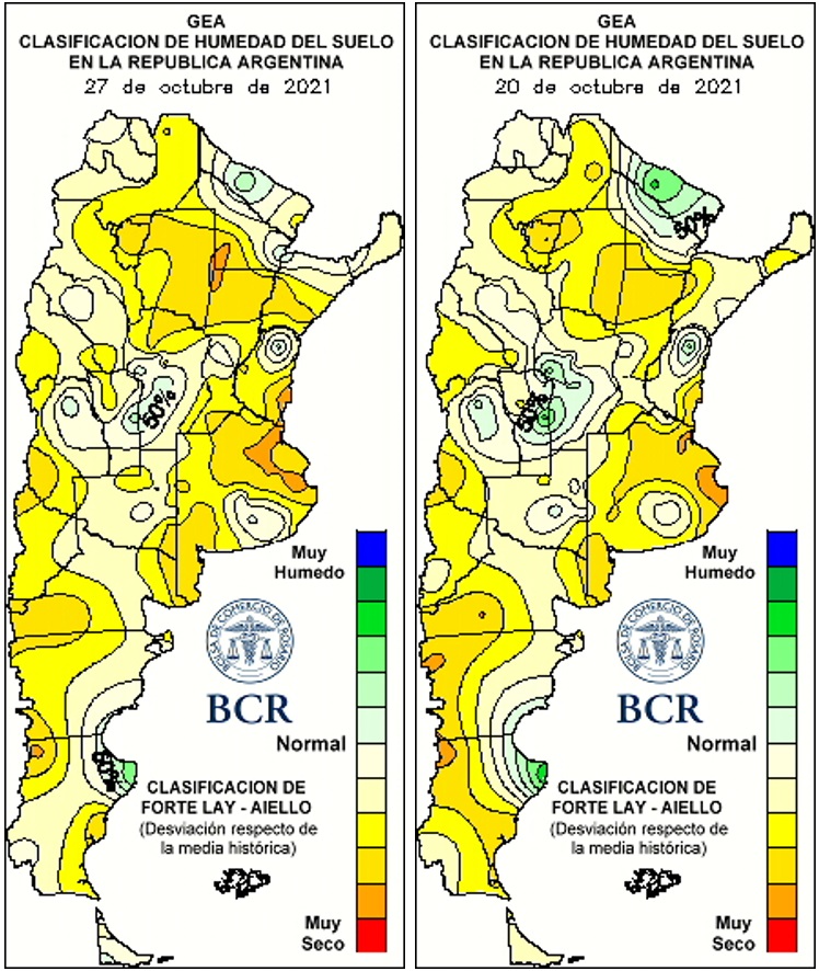 “Lotes que hace 10 años no se podían sembrar por estar siempre con excesos, en este año volvieron a producción por la falta de agua. El paisaje se ve muy diferente: las lagunas históricas de la zona han desaparecido”, dicen los ingenieros de Teodelina, sur de Santa Fe. Y agregan: “en lo que va del 2021 recibimos solo 500 mm, cuando tendríamos que estar cerca de los 750 mm”. Octubre será otro mes por debajo de la media en la región.