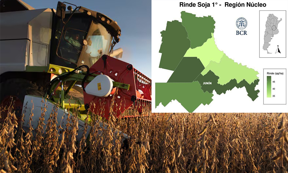 Comenzó fuerte la cosecha de soja de primera, pero el mal tiempo afecta su continuidad. De todas formas, en Junín y de lo que ya hay cosechado, se vieron excelentes rindes. El promedio, hasta ahora, es de 45 a 50 quintales por hectárea.