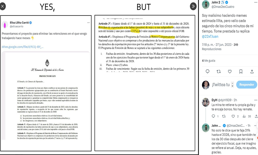 Lo cierto es que hubo una gran cantidad de productores que utilizaron tuitter, la misma red social que usó Lilita para divulgar su iniciativa, para en su propia publicación responderle que su proyecto en vez de mejorarles la situación se las está empeorando.
