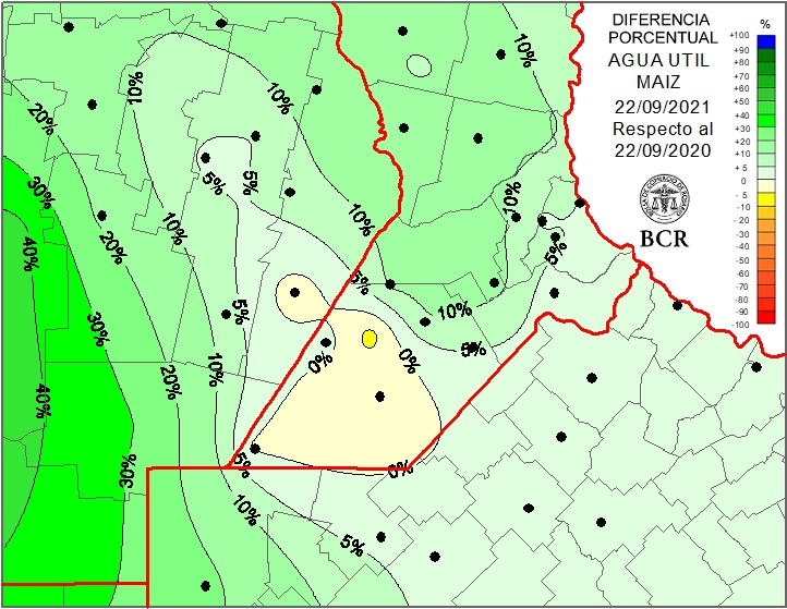 Se sembró el 55% del maíz, pero la falta de agua pone en dudas el futuro de la siembra. En el sur de Santa Fe, la zona que menos agua recibió en septiembre, las reservas de humedad en el primer metro están en el mismo nivel que hace un año atrás.