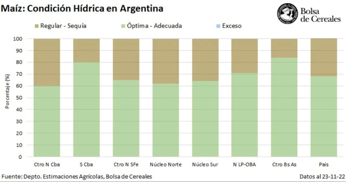 En tanto, a nivel nacional, la BCBA reportó que la siembra de cuadros de maíz con destino a grano comercial no toma ritmo. “Gran parte de los lotes incorporados se corresponden con planteos tempranos del cereal. Luego de relevar un progreso intersemanal de 0,2%, el avance en las labores ya se ubica en 23,8 % de nuestra proyección de siembra para la campaña 2022/23 de 7,3 millones de hectáreas. Por otro lado, se mantiene una demora interanual a nivel nacional de 6,2% en las labores”.